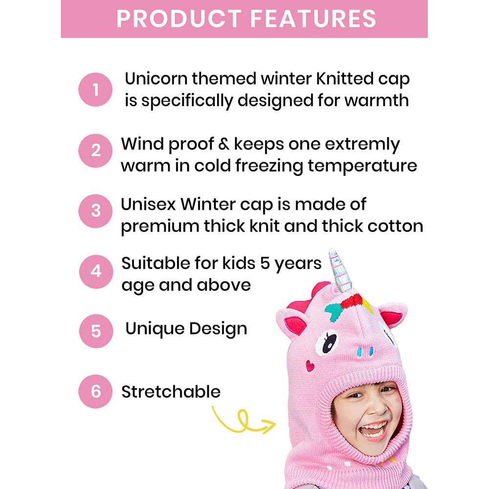 1) Winter Cap set: Our cute Unicorn themed winter Knitted cap is specifically designed for extreme warmth in freezing minus degree temperatures with extra softness protecting the head, face and neck.