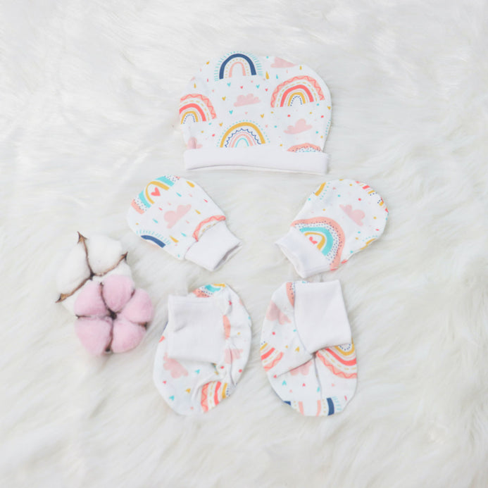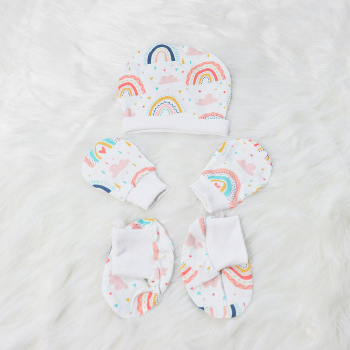 Look for Rainbows - Cotton Cap, Mittens & Booties Set