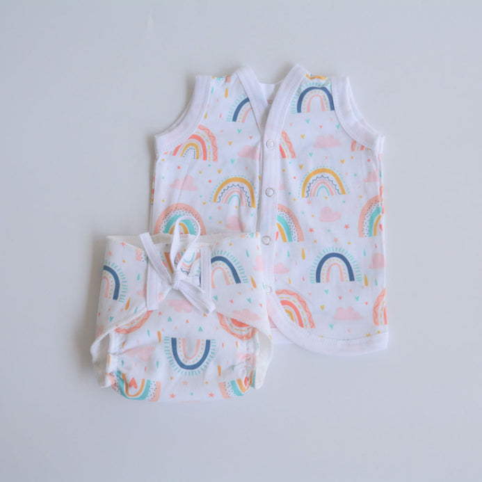 - 100% premium cotton hosiery, soft elastic bands. 1 Vest & 1 Nappy.