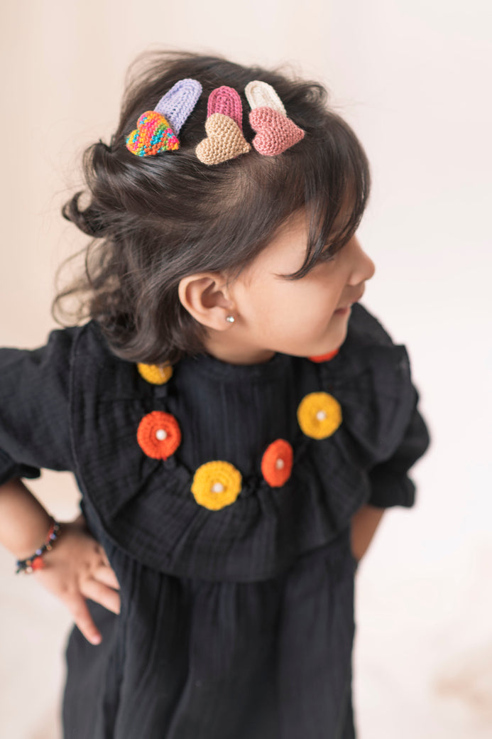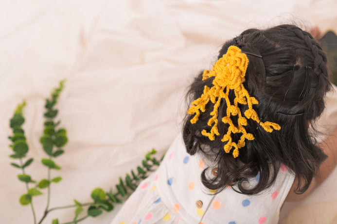 Introducing our delightful collection of crochet hair accessories for kids! Designed with playful charm and comfort in mind, each piece is handcrafted to add a touch of whimsy to your little one's hairstyle. From vibrant flower clips to adorable headbands, our crochet accessories are perfect for adding a pop of color and personality to any outfit. Made with soft, child-friendly materials, they are gentle on delicate hair and skin, ensuring your little trendsetter stays stylish and happy all day long. Explore our enchanting range and let your child's imagination soar with our fun and fabulous crochet hair accessories.