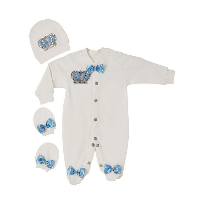• 3 PC Set includes - Full body suit romper with Crystal motif , Cap with motif , mittens