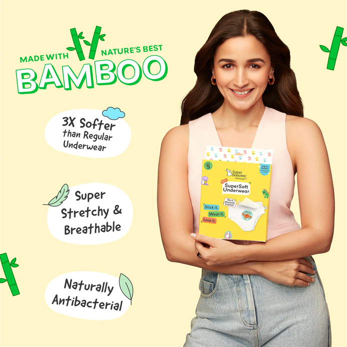 Turn everyday basics into something fun! SuperBottoms brings you SuperSoft underwear with stickers – a first-of-its-kind DIY underwear for kids. Made with SuperSoft bamboo fabric, these supersoft kids underwear are designed to be gentle, breathable, and comfortable for all-day wear. These fun DIY white SuperSoft Underwear are available in 2 variants – Brief for Boys & Brief for Girls!