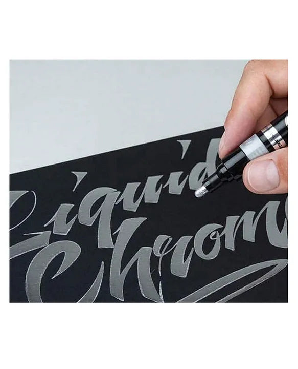 This set of 2 opaque silver ink markers comes with chisel and medium tips of 1.0 mm and 3.0 mm, giving a high-gloss mirror effect. It works well on all kinds of smooth and non-porous surfaces and is visible on both light and dark-colored surfaces.