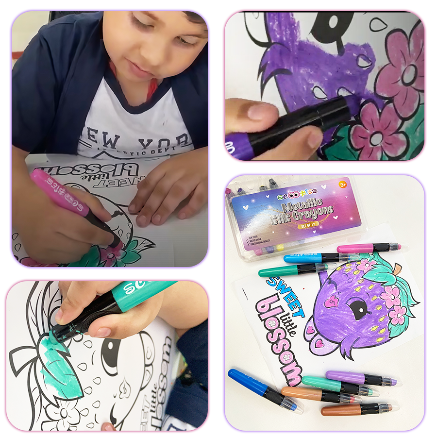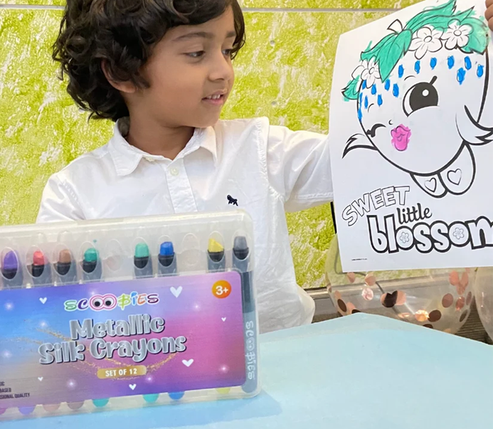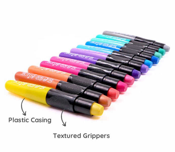 Scoobies Metallic Crayons gives a smudge-free professional art experience to kids, teens, and adults alike. The crayons are designed with a plastic casing and come with textured grippers that makes them 2X times more break-resistant than a normal crayon.