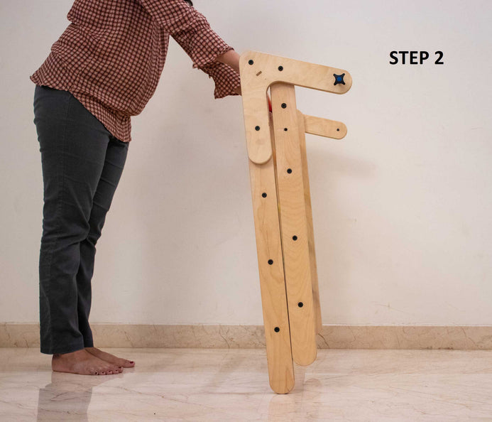 - It is a simple two-step process. Open the structure, align the sides to form a triangle or A. Once aligned, tighten the screw. Simply, unscrew and fold the triangle to store it.