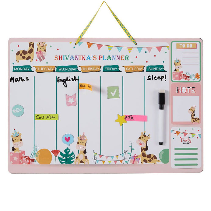 Size 16"-11" | Comes with a dry erase pen , 5 shaped magnets and is a rewritable planner.
