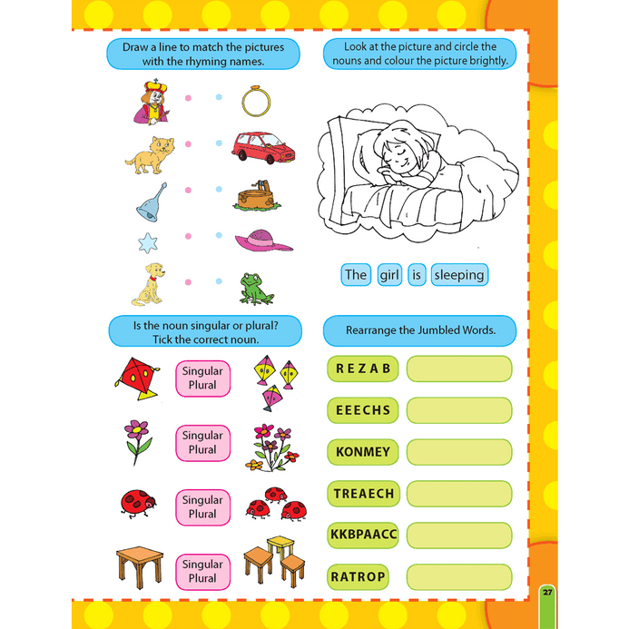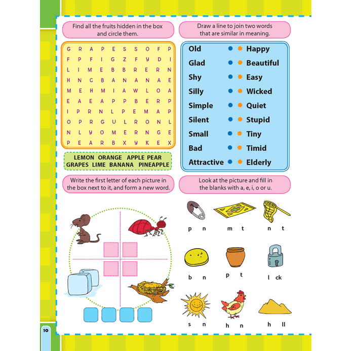 Using activity books is a great way to improve learning. Designed to cater to the young creative minds of today’s generation, ‘365 English Activity Book’ focuses on enhancing children’s intellect level. • Ideal for 6-8 years • Essential vocabulary and grammar topics • Interactive activities • Colourful images • Develops self-confidence • Help children with extra-curricular activities • Fun with education Filled with super fun activities, this book ensures that young learners familiarise themselves with basic language concepts. Enhancing their vocabulary and grammar skills, this activity book allows children to learn through play.