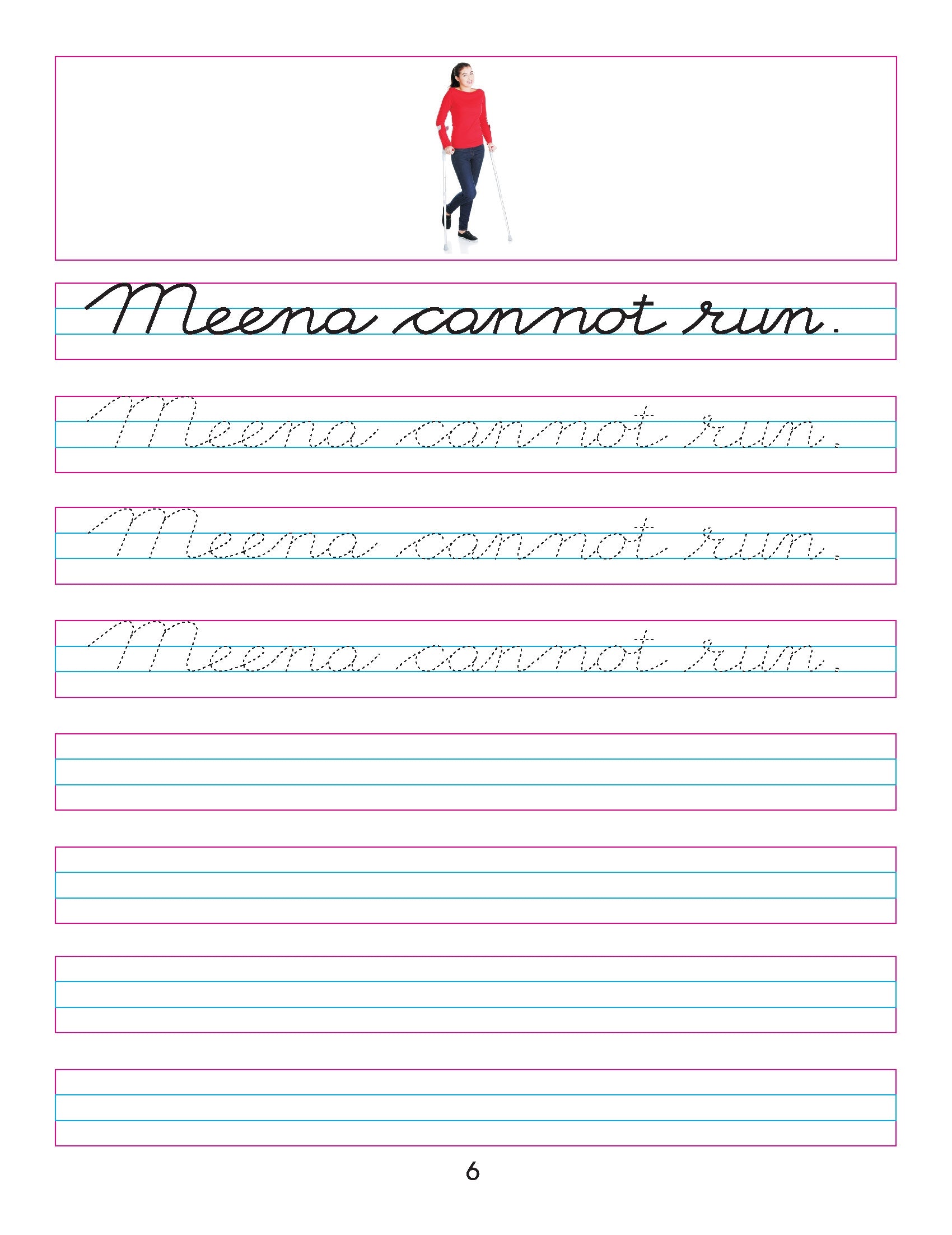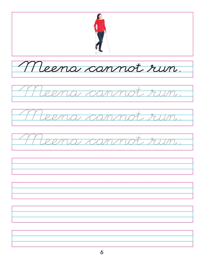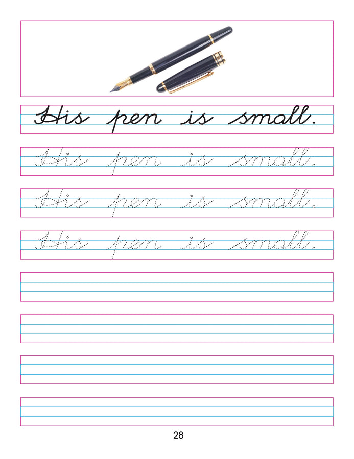 Very beneficial for motor skill development, cursive writing help children express their individuality and creativity. ‘Sentences Cursive Writing Book – 3’ will encourage young writers to learn connecting letters to make complete words and sentences. • Ideal for ages 3-5 • Support and encourage independent learning • Enhance creative skills • Colourful presentation • Sentence-picture recognition • Keep children motivated Bring together the skills you learnt in the previous two books on cursive writing and complete each page by copying the sentences and then writing on your own. This handwriting activity book also includes bright and colourful images to help the students along the way.
