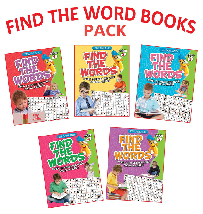 Find the Words – 5 Books Pack Find the Word is a word-game puzzle to test ability with language. It consists of the letters of words placed in a grid, which usually has a rectangular or square shape where words may be placed horizontally, vertically, or diagonally. ‘Find the Words’ this pack of five books has been designed for children with the right amount of words on various topics. Children will have a happy time while searching for them. • Ideal for age-group 3-7 years • Five books of 32 pages each • List of hidden words • Varied themes • Nice cover design Expertly designed these books are a perfect engaging way to improve spelling, enhance vocabulary, develop cognitive skills, and build word association. Kids will look up, down, left, right, and all around as they search for words hidden in each grid. This set of books is an excellent source to keep children away from screens but entertained.