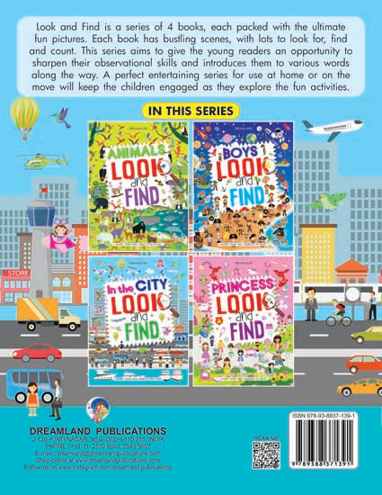 ‘Look and Find – In the City’ this ultimate book is full of fun pictures of hustle-bustle city life. Kids have to look and find the given pictures in busy scenes. This book encourages focus and exploration. It will help children develop searching and matching skills. • Ideal for ages 4-10 • 24 pages • Beautiful pictures • Cute cover This book aims to give children an opportunity to sharpen their observational skills. A perfect fun, this book will keep kids engaged as they explore and find the objects.