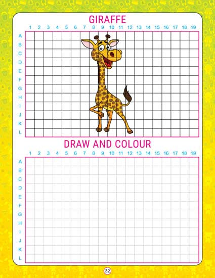 ‘My Activity – Animals in Grids Book’ is an entertaining and educational book through which kids can learn how to draw using the grid copy method. Clear images given in the book guide kids on how simple it is to draw pictures and create their masterpieces of a dog, cat, fox, horse, and more. • Ideal for age-group 2-5 • 32 engaging activity pages • Cute cover design • Colourful presentation This book is bound to encourage budding artists to draw the animals following the grid and given images and fill colours of their choice. By following the given grid, kids can improve hand-eye coordination and fine motor skills.