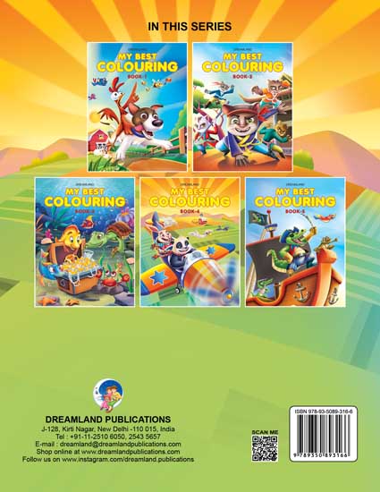 Full of beautiful attractive pictures ‘My Best Colouring Book’ is a fun way to develop early creative skills. It is indeed a wonderful gift to explore a world of colouring fun and learning. • Ideal for ages 2-6 • 32 pages • Colourful presentation • Nice cover design • Suitable to colour with crayons, pencil colours, or sketch pens This book will help the little artists to enhance pictures and colours recognition and fine motor skills. It is ideal to build hand-eye coordination and have creative fun.