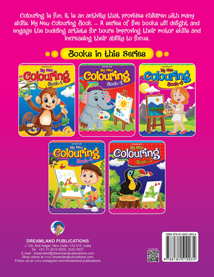 ‘My New Colouring Book’ is a simple colouring book with basic pictures such as a telephone, fish jumping out from a fishbowl, a hot cup of tea, etc. Intended for children from 2 to 6 years, this book will serve as a great resource to improve the motor skills of little hands. • Ideal for ages 2-6 • 32 pages • Colourful presentation • Nice cover design • Suitable to colour with crayons, pencil colours, or sketch pens This book will help children develop their concentration, hand-eye coordination, and creative skills. All pictures have bold lines that make colouring easier. Children are sure to enjoy this wonderful gift to explore a world of colouring fun and learning.