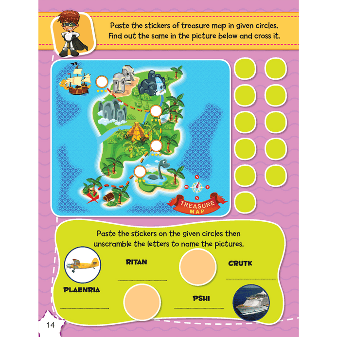 Full of bright and colourful pictures, stickers and fun activities ‘Sticker Activity Book – Boys’ shares a new way to enjoy learning while having fun. • Ideal for ages 3-6 • 16 pages with 2 pages of stickers • Colourful presentation • Cute cover design • Encourages independent learning This book offers not just stickers but fun facts too that help children learn. The activities included in the book helps tiny tots develop their creativity and motor skills.