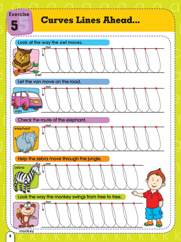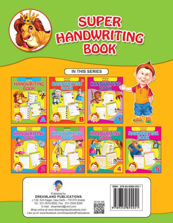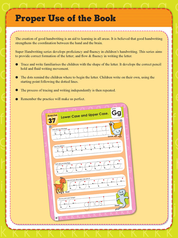 Great educational complement for primary school children ‘Super Handwriting Book’ is a fun and innovative resource to teach kids writing each letter of the alphabet, combining letters to make words, and forming sentences with easy-to-follow directions. This is the perfect starting book to give beginner learners a head-start with 60+ pages of tracing practice. • Ideal for age-group 3-5 • 64 pages • Cute cover design • Colourful presentation Organised in a progressive skill-building way this amazing handwriting practice book will help children develop their confidence to write neatly and improve their hand-eye coordination and motor skills.