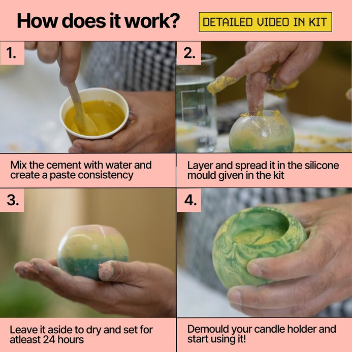 Add warmth and elegance to your home decor with our DIY Cement Tea Light Candle Holder Kit! In collaboration with Bharat Floorings and Tiles, this kit provides high-quality colored cement to craft unique, minimalist candle holders.