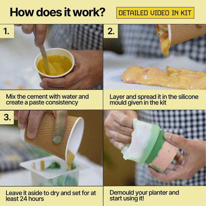 Add a touch of industrial charm to your home decor with our DIY Cement Planter Kit! In collaboration with Bharat Floorings and Tiles, this kit offers high-quality colored cement for unique and modern planters.