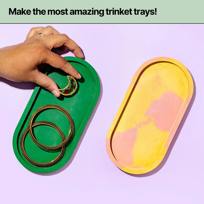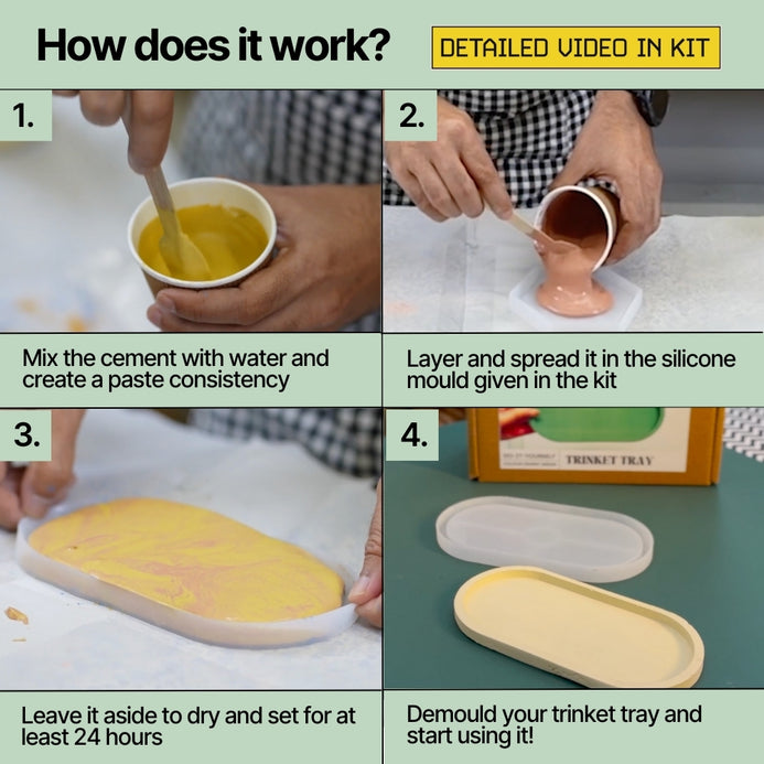 Add a cozy and creative touch to your home decor with our DIY Cement Trinket Tray Kit! In collaboration with Bharat Floorings and Tiles, this kit provides high-quality colored cement to make unique and personalized trinket trays.