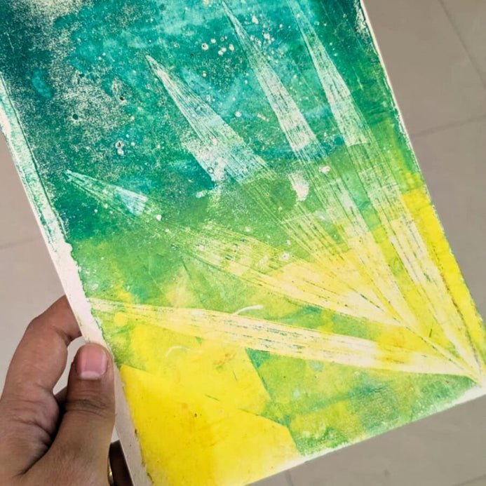 Gel plate mono printing is a unique art form that involves transferring paint or ink from a smooth surface (the gel plate) onto paper, creating a distinctive, one-of-a-kind print. It dates back to ancient times and has evolved into a modern, mess-free technique that allows for endless experimentation with colors, textures, and designs.
