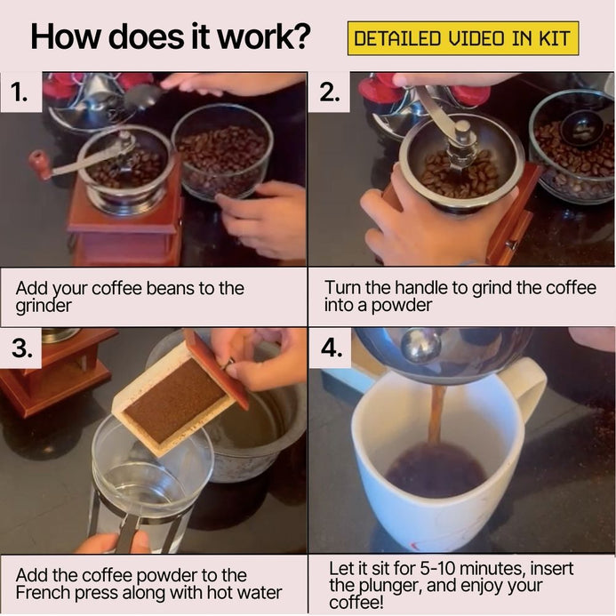 3. Comprehensive Tutorial: Learn to grind beans, brew coffee, and froth milk with our detailed video guide. Discover 6 different ways to use the French press!