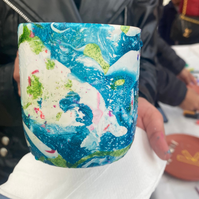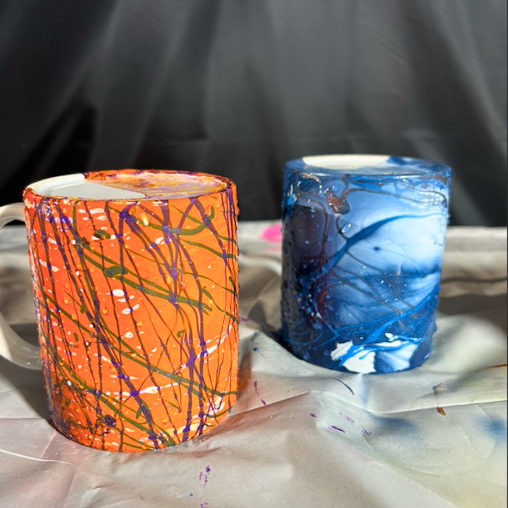 Discover the art of marbling and create stunning designs on a mug that can be used as a pen holder, brush holder, or decorative piece.