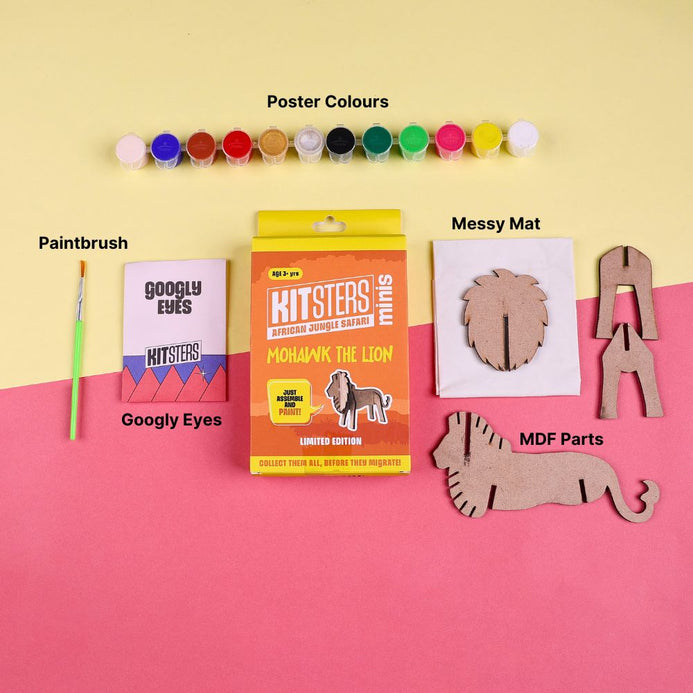 Embark on a creative safari adventure with the Mohawk the Lion DIY Kit! Perfect for young explorers, this kit allows children to paint and assemble their own majestic lion figure. With easy-to-follow instructions and vibrant colors, kids can bring Mohawk to life and display him proudly.
