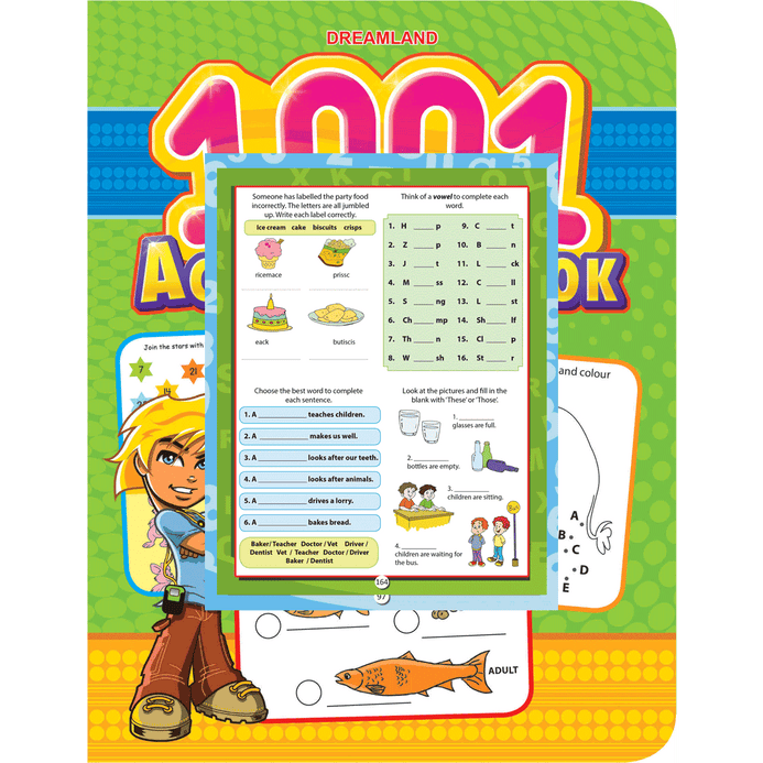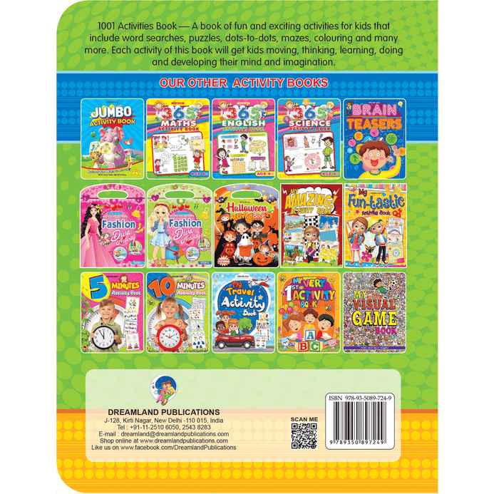 Designed for early learners, Dreamland’s ‘1001 Activities Book’ is full of exciting activities that make learning enjoyable. Child-friendly activities incorporated in this book will encourage independent learning, stimulate the brain, inspire creativity, and develop fine motor skills. • Perfect activity book for kids ages 4-8 • Suitable for young learners • A wide variety of activities • Age-appropriate content • Colourful presentation • High-quality book Matching pictures and words, number puzzles, colouring, mazes, making words, and lots more, from easy starters to tricky fun activities of this book will keep kids engaged and support their learning and concentration.