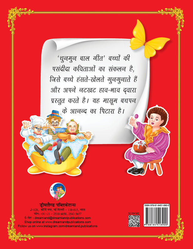 ‘Chunmun Balgeet’ is a compilation of children's favourite poems, which are sung by the children with laughter and play and presented by their naughty gestures. This is a box of innocent childhood joy. • Ideal for ages 3-5 • 32 pages • Beautifully illustrated • Ideal for learning Hindi nursery rhymes • Cute cover Good to read and teach growing kids the Hindi language, this book is very helpful. Colourful presentation is an added feature of the book that keeps kids engaged and entertained.