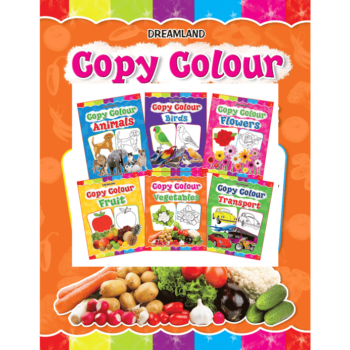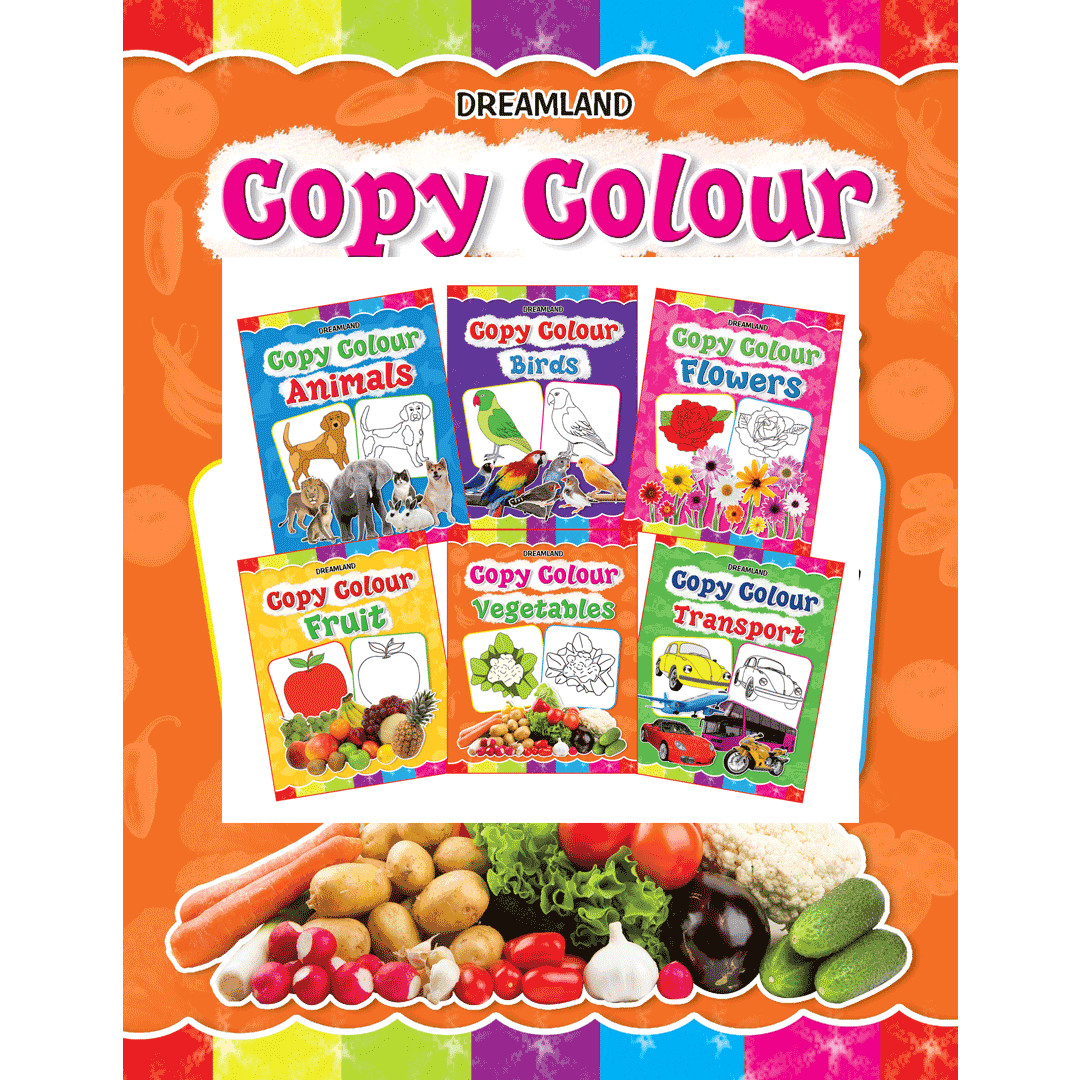 Colouring is important in early childhood education for a lot of reasons! ‘Copy Colour’ is a pack of 6 books including topics – Animals, Birds, Flowers, Fruit, Vegetables, and Transport. These books will encourage little artists to familiarise themselves with various colours, shades, shapes, patterns, and objects. • Suitable for 1-6 years • Each book has 16 big pictures of various objects • Each page includes the names of the objects • Attractive cover design • Develops colour recognition Designed to develop the artistic skills of children by copying the given illustration, these super-fun books are best for colouring pencils and crayons or sketch pens. Kids will spend a colourful time colouring their favourite topic.
