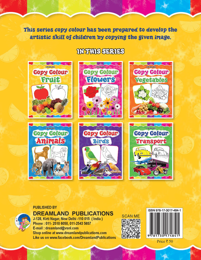 Colouring is popular with little ones. ‘Copy Colour Fruit’, this cute colouring book has simple illustrations of lots of fruits such as apple, banana, pomegranate, strawberry, and many more for toddlers to fill colours in. It will also help little artists learn about the names of healthy, juicy, colourful fruits. • Suitable for 1-6 years • 16 big pictures of fruits • Each page includes the name of the fruit • Attractive cover design • Develops colour recognition Designed to develop the artistic skills of children by copying the given illustration, this super-fun book is best for colouring pencils and crayons or sketch pens. Kids will spend a colourful time colouring their favourite fruit.