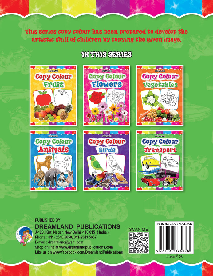 Full of attractive amazing vehicles ‘Copy Colour – Transport’ introduces early learners to various modes of transportation around them. This cute colouring book would make the perfect gift for any child and help them learn how to colour. • Ideal for ages 1-6 • 16 pages • Suitable to colour with sketch pens, crayons, or pencil colours • Teaches names of vehicles Great for developing fine motor skills this book with cute pictures that are easy to colour is perfect for little fingers and easy to copy. This super-fun book is a special gift for tiny tots to keep them engaged in a creative manner.