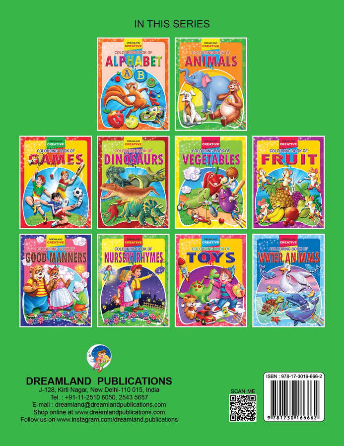 ‘Creative Copy Colouring – Animal’ – this super fun colouring book will introduce kids to cute animals like elephants, bears, dogs, and more. It will help them learn how to colour. Tiny tots will have hours of fun matching the colours to complete the pictures. • Ideal for age-group 1-6 • 16 pages • Bright colourful pictures repeated as simple outlines • Perfect to colour with colouring pencils, sketch pens, or crayons This is a wonderful book that will develop kids’ colour recognition skills, coordination, and motor and concentration skills. It will also help kids to learn the names of different animals.
