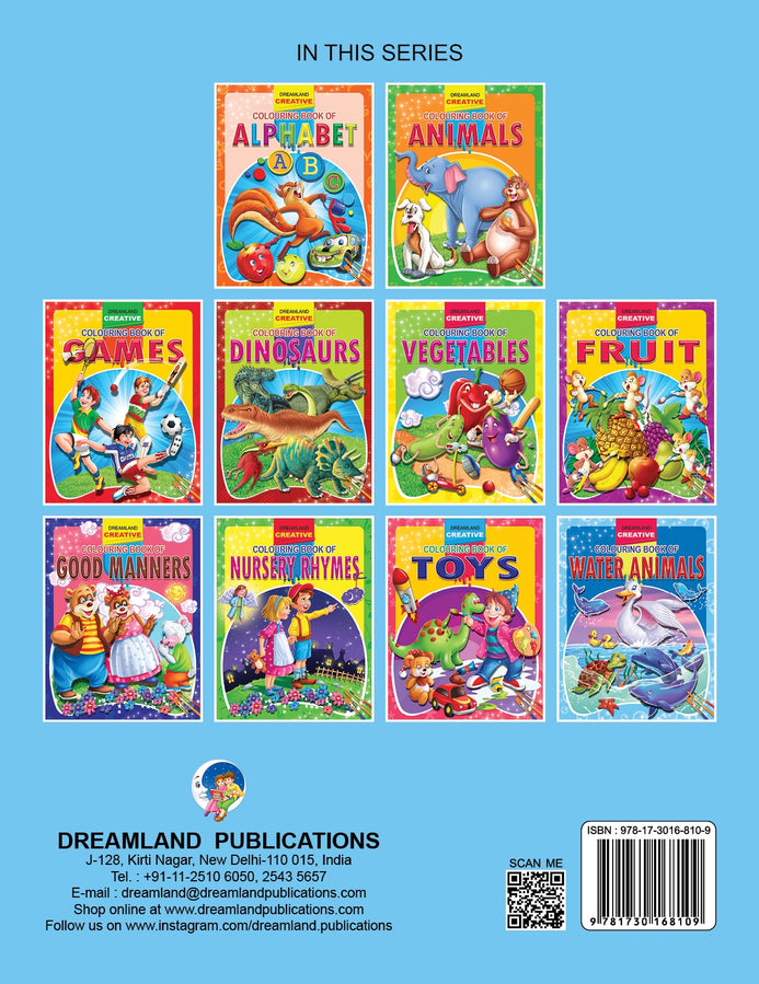‘Creative Copy Colouring – Animal’ – this super fun colouring book will introduce kids to cute water animals like ducks, whales, turtles, dolphins and more. It will help them learn how to colour. Tiny tots will have hours of fun matching the colours to complete the pictures. • Ideal for age-group 1-6 • 16 pages • Bright colourful pictures repeated as simple outlines • Perfect to colour with colouring pencils, sketch pens, or crayons This is a wonderful book that will develop kids’ colour recognition skills, coordination, and motor and concentration skills. It will also help kids to learn the names of different water animals.
