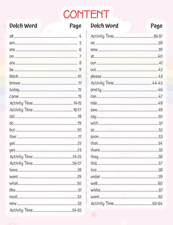 Dreamland Dolch Sight Words Level 2- Simple Words and Activities for Beginner Readers