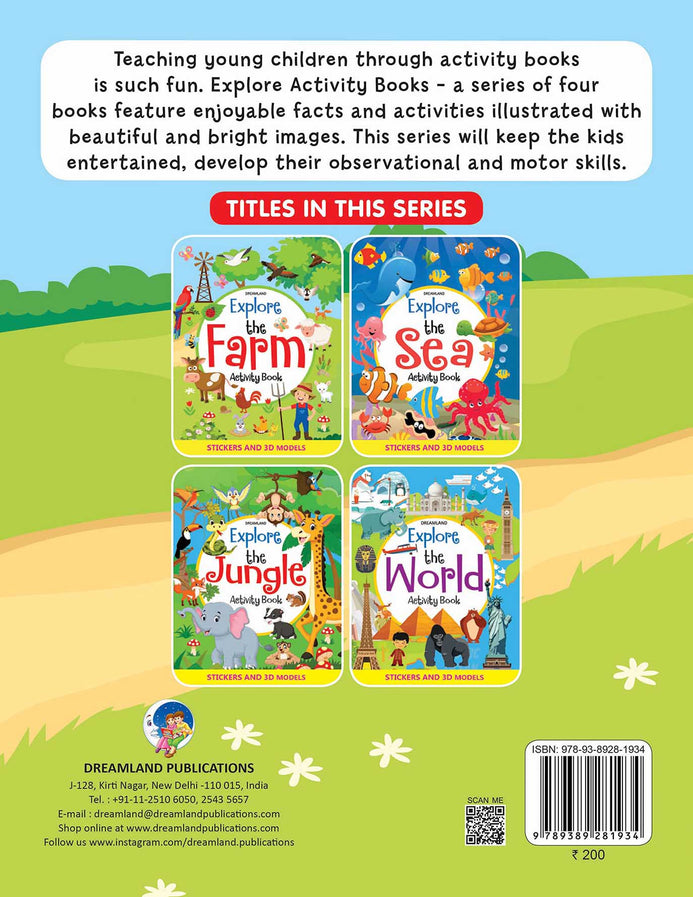 The farm is an area of land and its buildings, used for growing crops and rearing animals. Kids will enjoy exploring life on the farm with this adorable ‘Explore the Farm’ activity book. • Perfect for ages 4+ • 64 pages • Beautiful educative pictures • Encourage reading habits • Plenty of farm animal facts • Interesting educational activities • Colourful pictorial presentation • Beautiful cover design This book featuring cute creative activities and enjoyable facts with bright and beautiful images will help kids develop their observational and motor skills while learning about farm animals.