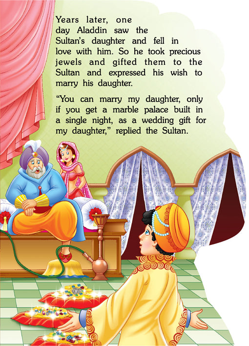 A magic lamp, a beautiful princess, and a young man – Aladdin is a fun and adventure story. ‘Fancy Story Board Book – Aladdin’ is a stunning storybook compiled in an easy-to-understand language that will make an excellent first reader for young children. • Ideal for ages 3-8 • 12 pages • Beautifully illustrated • Sturdy board book • Attractive die-cut design • Cute cover Beautiful illustrations with an appealing die-cut presentation, this story will bring tiny tots’ imagination to life. It is sure to become a favourite in any beginning library.