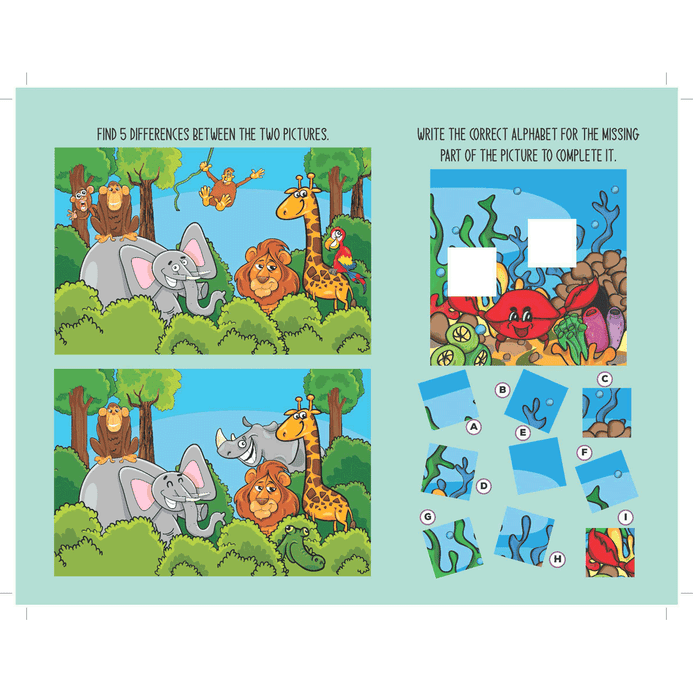 Let’s unleash the kids’ creativity with ‘Fun with Activity & Colouring Book’ that is full of amusing activities such as colouring, find the difference, word search, and more! These activities will support learning through play by promoting motor skills and concentration.