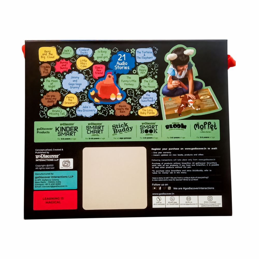 In The Box : 3 Interactive Story Books, 30+ Re-Recordable Stickers, 1 Interactive Pen, 1 Charging Cum Data Trasnfer Cable