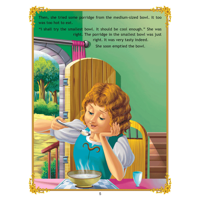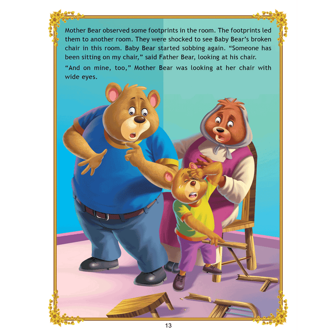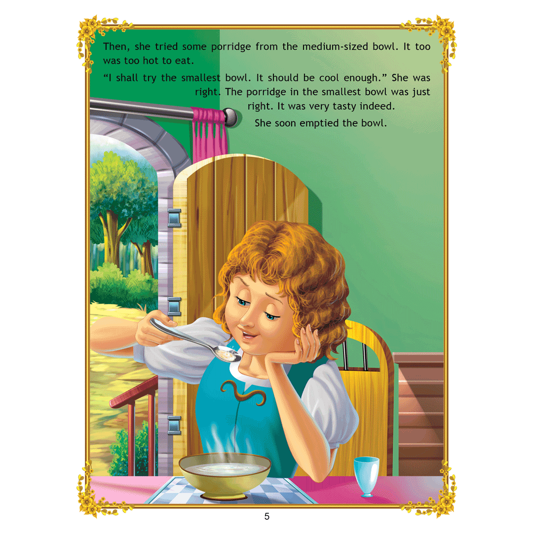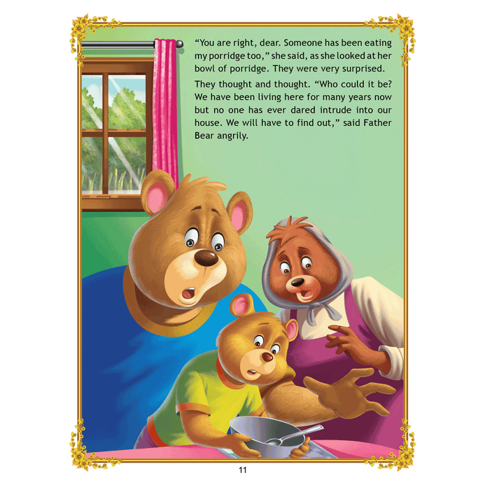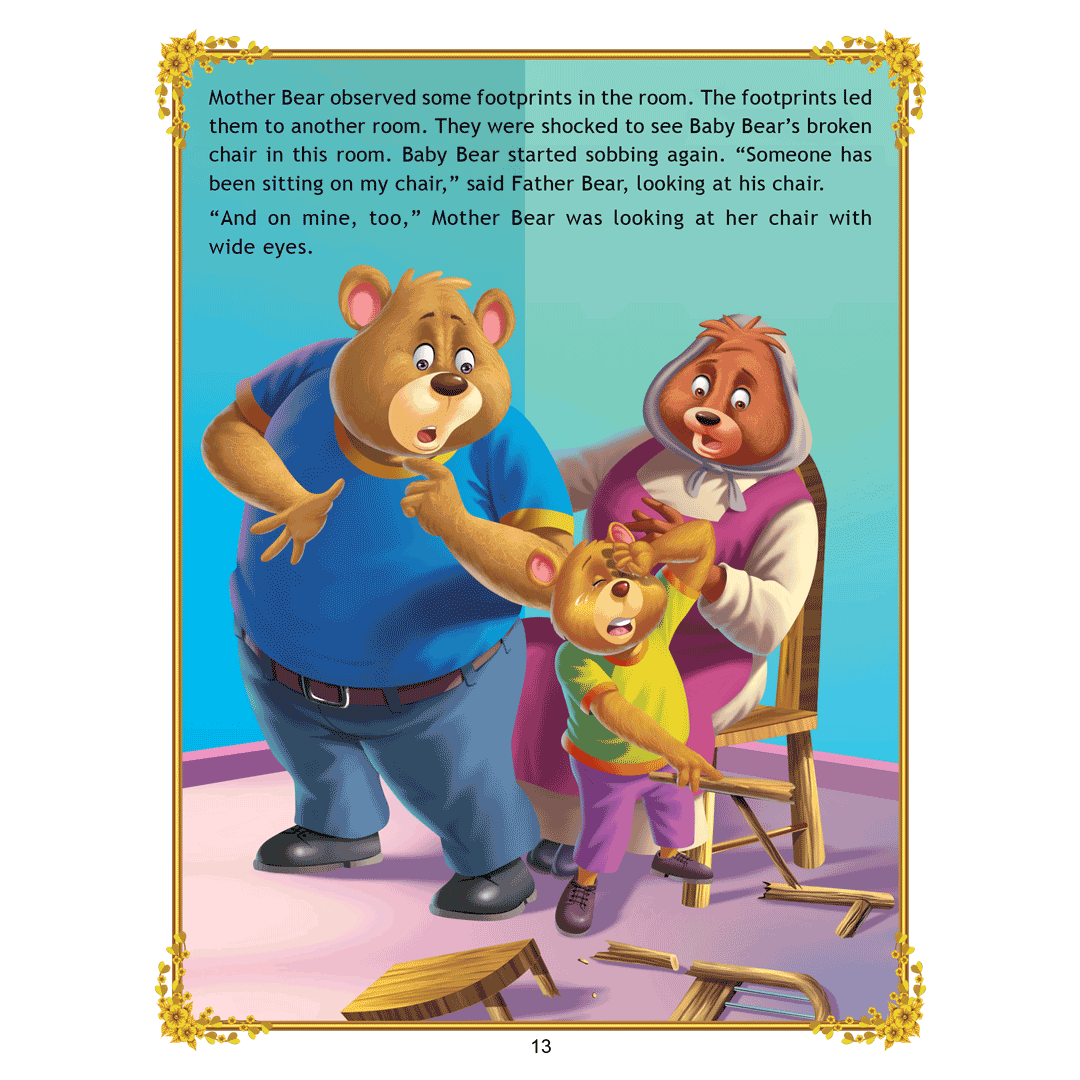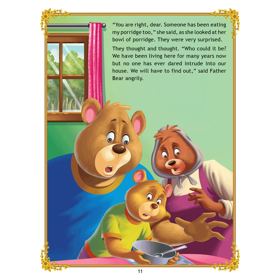 Featuring 32 pages of captivating illustrations, this storybook tells the story of the three bears who are in for quite a surprise when they return home and realise that a curious girl has made herself at home in their cottage. She eats their porridge, sits in their chairs, and lies down in their beds. • 32 pages • Ideal for age-group 2-6 years • Amazing illustrations • Colourful cover • Inculcates reading habit Presented through captivating illustrations, this is an excellent version of a famous fairy tale that will be loved by children everywhere. Easy-to-understand text ensures that kids enjoy reading it and improve their language skills as well.