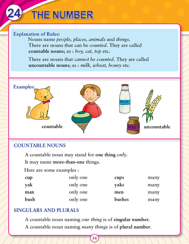 Compiled and designed in a uniquely graded manner ‘Graded English Grammar’ is meant for students of Grade 2 who have already learnt the lessons like Sounds of Letters, One and Many, Naming Words, Action Words, and more. ‘Graded English Grammar – Book 2’ includes a recapitulation of earlier learnt lessons and others like Pronouns, Actions Going On, Short Forms, Use of Capital Letters, Describing Words, and many more. • Ideal for age-group 3-5 • 88 pages • Cute cover design • Colourful presentation The use of colourful illustrations helps children grasp basic facts of English Grammar. Supporting children’s basic understanding of English Grammar, this book included the explanation of the rules of grammar taught in each lesson to make the teaching-learning process much easier and more effective. Exercises given at the end of each lesson will allow kids to check their progress.