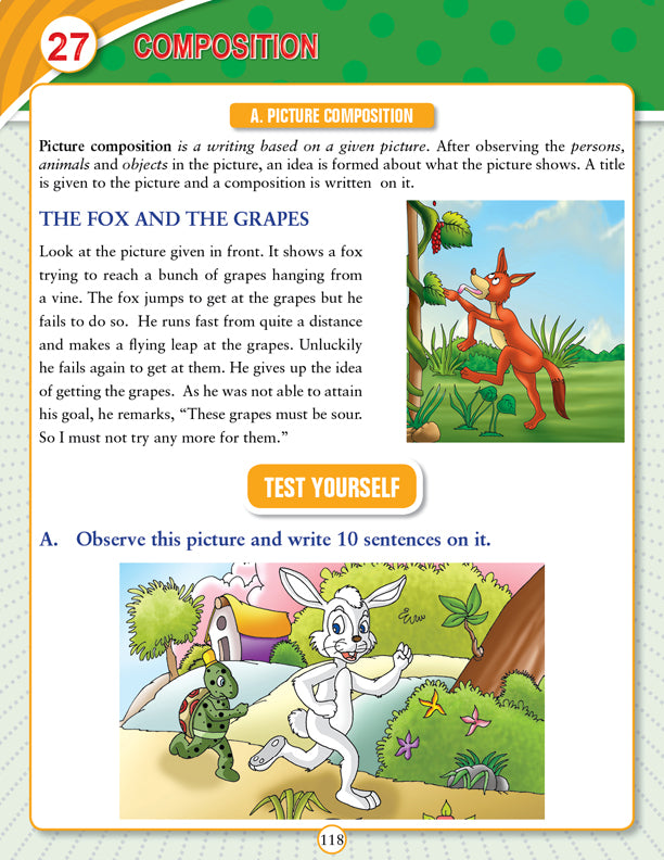 Compiled and designed in a uniquely graded manner ‘Graded English Grammar’ is meant for students of Grade 4 who have already learnt the lessons like ABC Order, The Word, Nouns, Pronouns, and more. ‘Graded English Grammar – Book 4’ includes a recapitulation of earlier learnt lessons and others like Alphabetical Order, Syllables, Parts of Simple Sentence, Adjectives, Verbs, and many more. • Ideal for age-group 8 years and up • 144 pages • Cute cover design • Colourful presentation The use of colourful illustrations helps children grasp basic facts of English Grammar. Supporting children’s basic understanding of English Grammar, this book included the explanation of the rules of grammar taught in each lesson to make the teaching-learning process much easier and more effective. Exercises given at the end of each lesson will allow kids to check their progress.