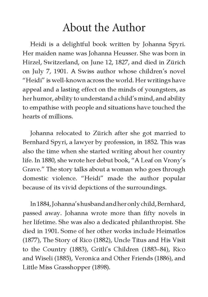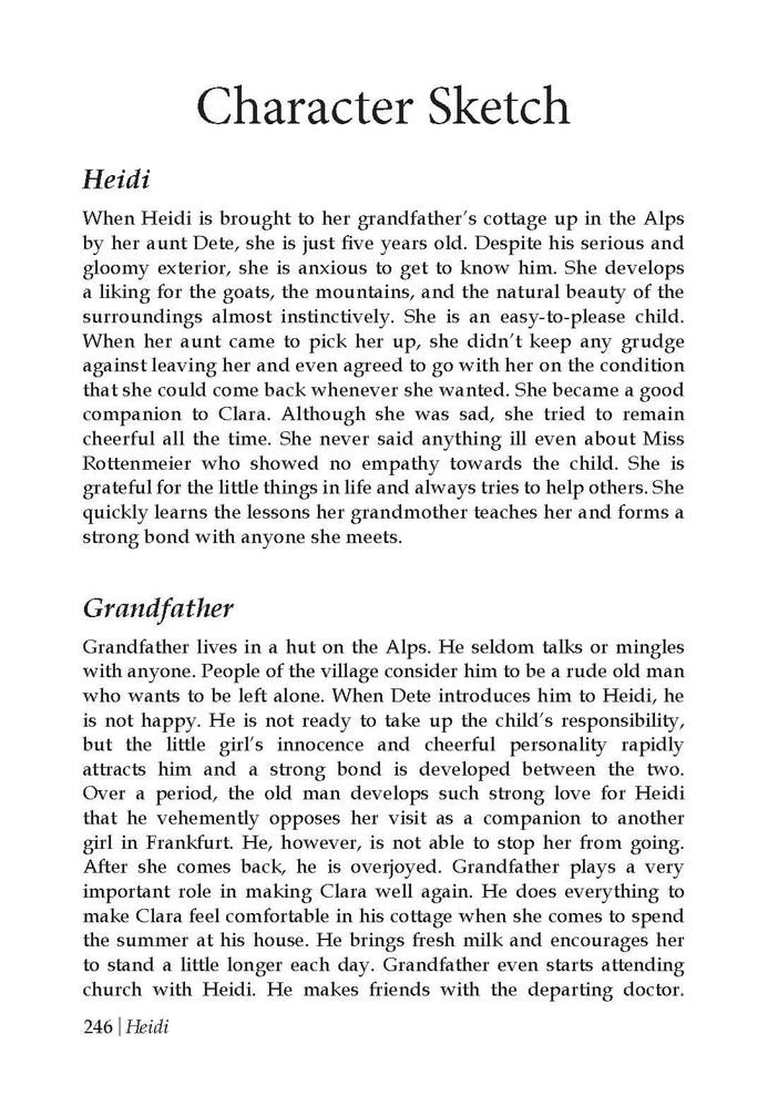Heidi's tale is about nature, love, care and restoration. Reading the story will help you understand how significant it is to be close to nature. It encourages you to lead a healthy life, be thankful to God for what he has given you, and love the ones who are close to you. As Heidi's life unfolds, you will see how nature makes impossible things happen. Let us take a deep dive into Heidi's impossible part of her life.