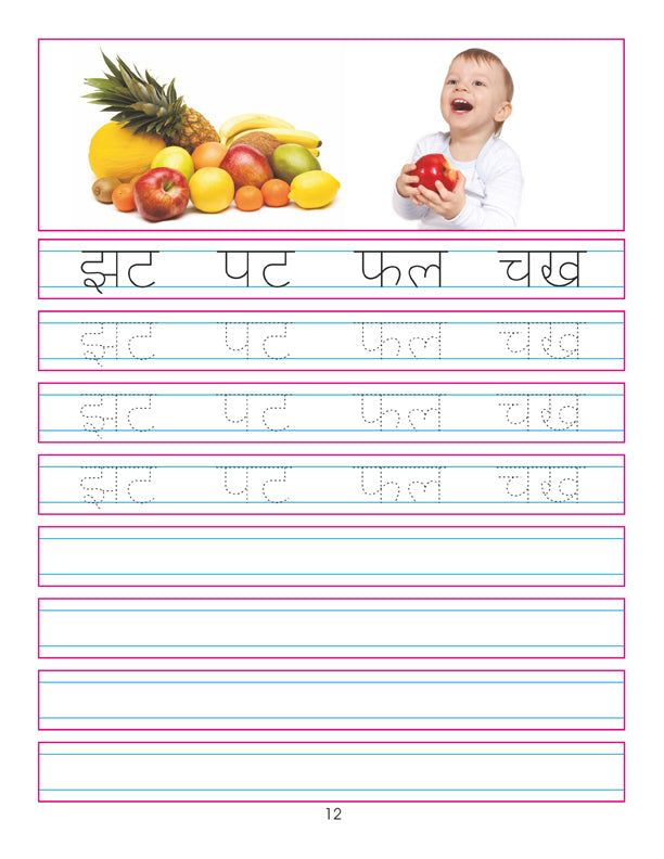Learning to write words in the Hindi language can be fun with ‘Hindi Sulekh Pustak Part 2’. This book features Hindi words with pictures of associated objects to explain each word. Kids can first learn to write the word by simply tracing on the dotted alphabets and then practice writing them on their own. • Perfect for age-group 3-7 • 48 pages • Colourful presentation • Cute cover design This colourful picture book is aimed to make learning easy by introducing kids to everyday Hindi words through colourful images. It will also help children enhance their Hindi vocabulary.