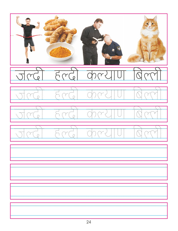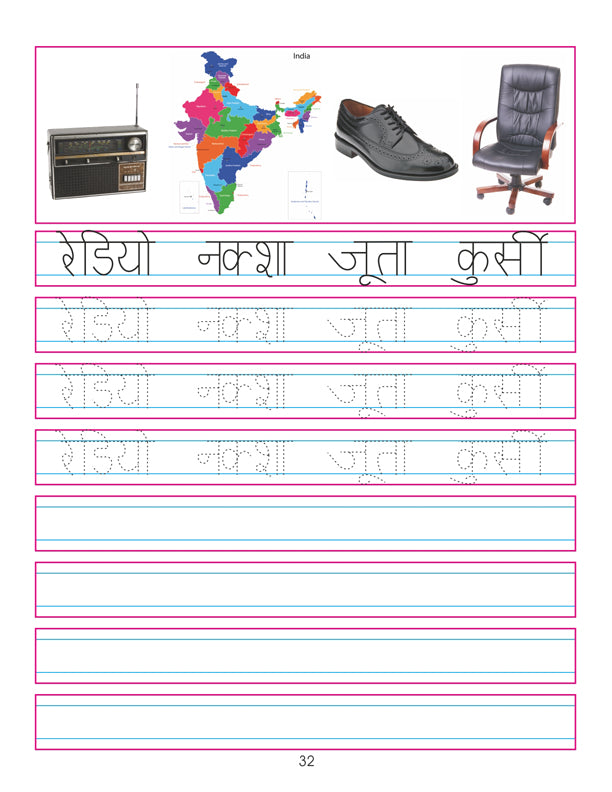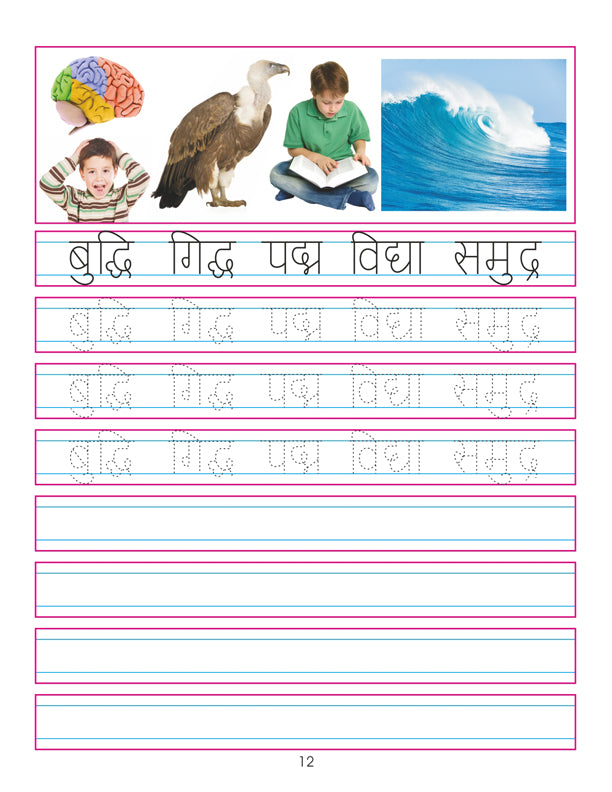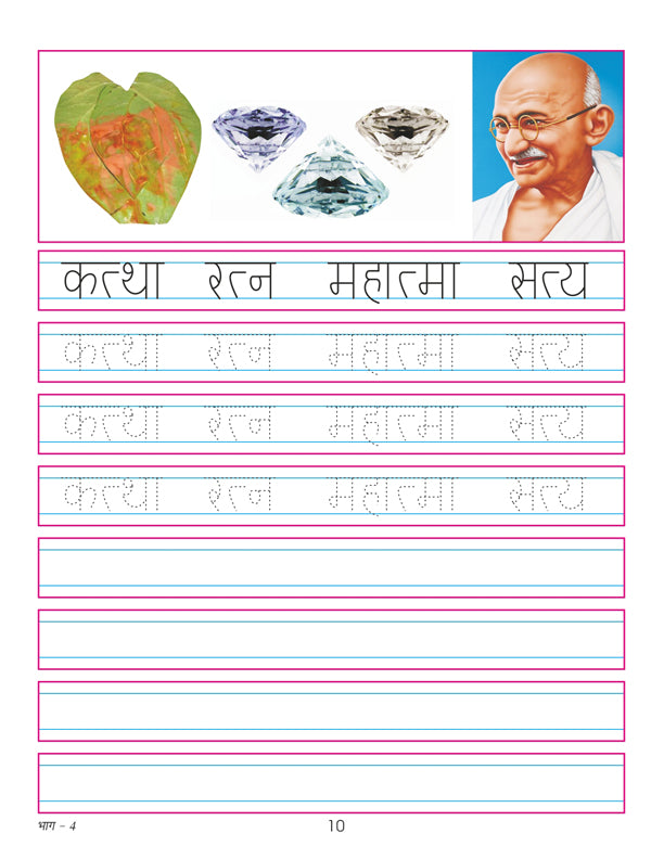 Hindi SulekhPustak Part – 4 is designed to teach children first Hindi words with matras. This book features Hindi words with pictures of associated objects to explain each word. Kids can first learn to write the word by simply tracing on the dotted alphabets and then practice writing them on their own. • Ideal for ages 3-7 • 48 practice pages • Colourful images for each letter of the Hindi language • Improves handwriting • Encourages independent learning This colourful picture book is aimed to make learning easy by introducing kids to everyday Hindi words through colourful images. It will also help children enhance their Hindi vocabulary.