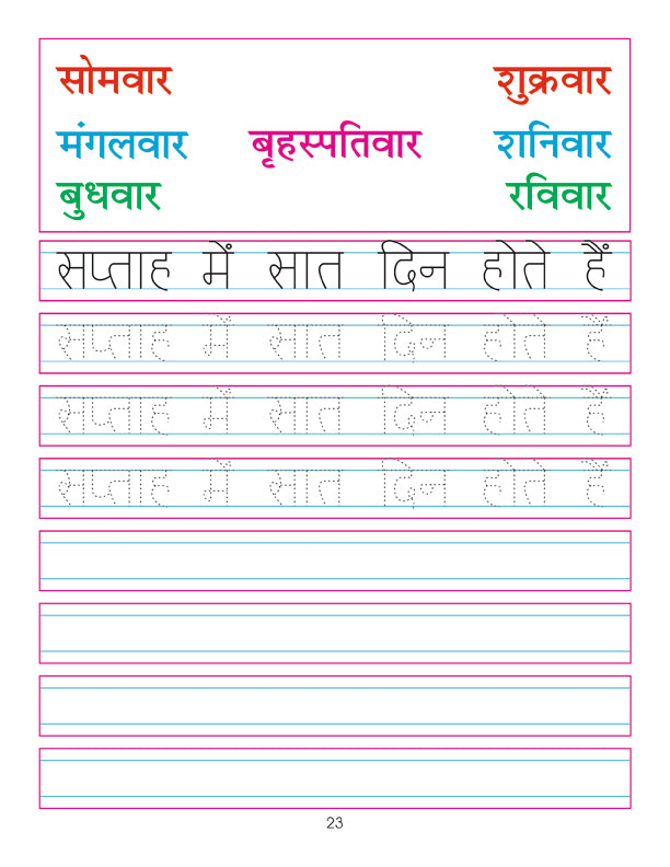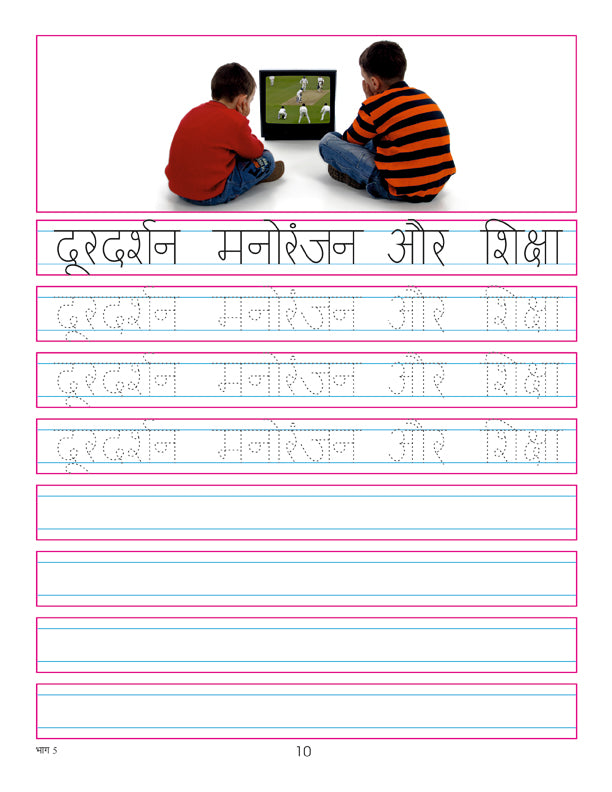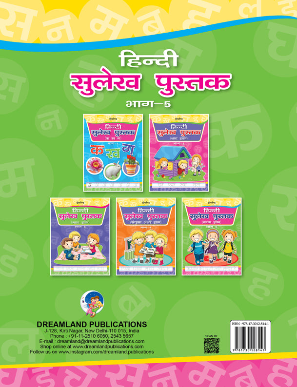 Hindi SulekhPustak Part – 5 is designed to teachyoung learners Hindi language. This book covers words and small sentences that are easy-to-understand by kids. Each page of this focuses to help children become fluent in Hindi language and write neatly in legible manner. • Ideal for ages 3-7 • 56 practice pages • Colourful images for each word and sentence of the Hindi language • Improves handwriting • Encourages independent learning This is an important book that helps in improving various skills that include pencil control, creativity, hand-eye coordination, and above all understanding reading and writing Hindi language words.