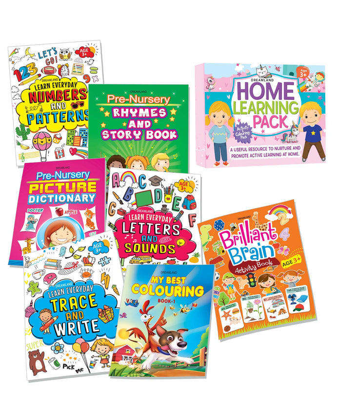 ‘Home Learning Pack’ is a perfect pack to teach children the basics. This pack of child-friendly seven books is ideal for teaching English language, Math, Art, and more. These fun and educational activity books can be used anywhere, anytime, and by anyone willing to learn and have fun. • Perfect for ages 3-4 • 7 books including – My Best Colouring, Brilliant Brain, Numbers and Patterns, Picture Dictionary, Letters and Sounds, Pre-Nursery Rhymes and Story Book, Trace and Write • Easy-to-read format This age-appropriate set of books is an outstanding resource to give children a head start on a bright future. It will introduce children to various topics making learning fun and they will definitely look to learning more and more.