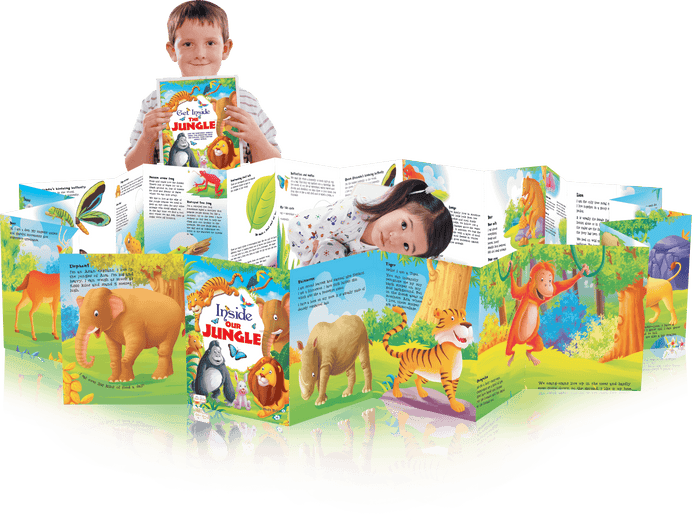 Here is a book that folds and flips. It shows interesting information about different animals in the jungle both front and reverse. Unfolded book is 672 cm long. This book will keep your child engaged as she opens each folded leaf. Using it you can create an environment that is whimsical and fun, yet apt for enjoyable learning. You can either let the child unfold one by one and lift the flaps to explore more or make the book stand up and read in one go. This accordion-style, concertina book will be a treasured keepsake gift. Enhances STEAM learning and knowledge skills.