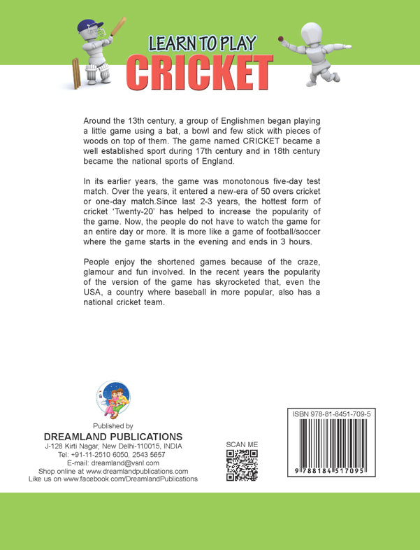 ‘Learn to Play Cricket’ this book is a fun joyful ride for readers. It lets the readers know the intricacies of the game. It will give cricket enthusiasts an in-depth analysis of the game so that they can involve themselves completely in the game. • 128 pages • Ideal for ages 9-12 • Essential for all cricket lovers • Amazing illustrations • Colourful cover Equipped with clear-cut images to illustrate the text and easy-to-follow explanations, this book will prove to be of great resource for early learners. It is the essential guide for cricketers of all ages who want to improve their all-round skills and player performance.