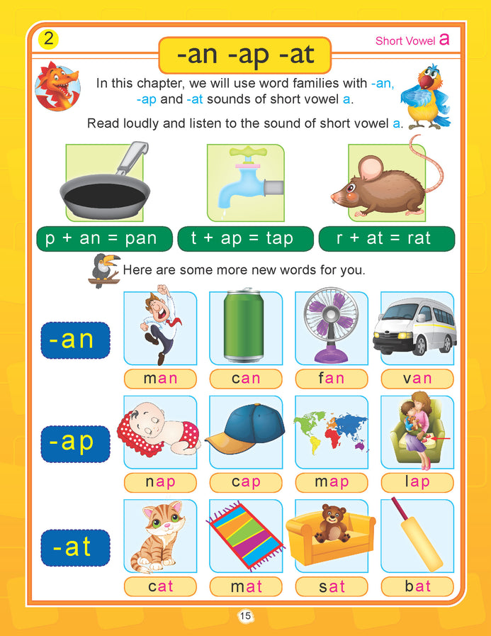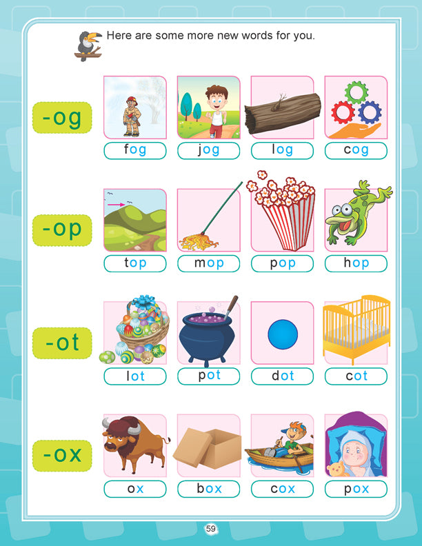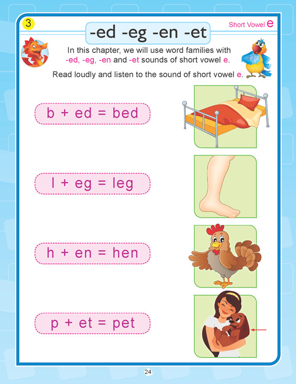 Phonics is a method of teaching children to read by training them to associate written letters with their sounds. ‘Learn with Phonics Book -2’ offers beginning readers the strategies they need to sound out words. • Ideal for ages 4-10 • Variety of engaging activities • Solved examples • Colourful pictures • 96 pages This book will help young learners quickly learn the sounds of short vowel sounds and understand how that sound makes words, thus promotes vocabulary and correct pronunciation. Words represented with colourful pictures enhance and encourage independent learning and strengthen spelling skills.