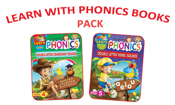 Phonics is a method of teaching children to read by training them to associate written letters with their sounds. ‘Learn with Phonics – Pack 2 includes two books – Double-letter Consonant Sounds and Double-letter Vowel Sounds. These books aim to teach youngsters the phonetic sounds of each letter and letter blends. • Ideal for ages 3-8 • Variety of engaging activities • Solved examples • Colourful pictures • 2 books of 96 pages each These books will help young learners quickly learn the sounds of all letters of the alphabet and understand how that sound makes words. This pack of books will build the vocabulary and pronunciation skills of learners.